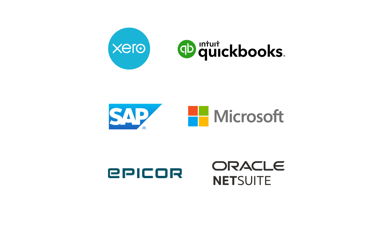 Integrated with Xero, QuickBook, NetSuite, among many others. Contact us to learn more.